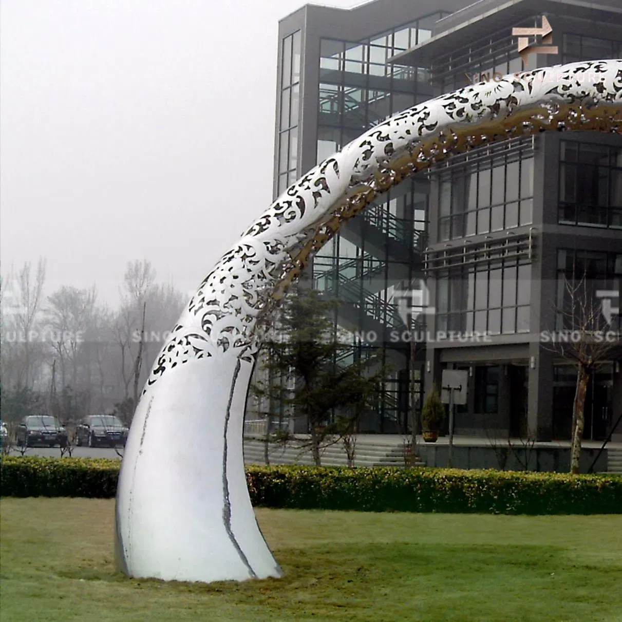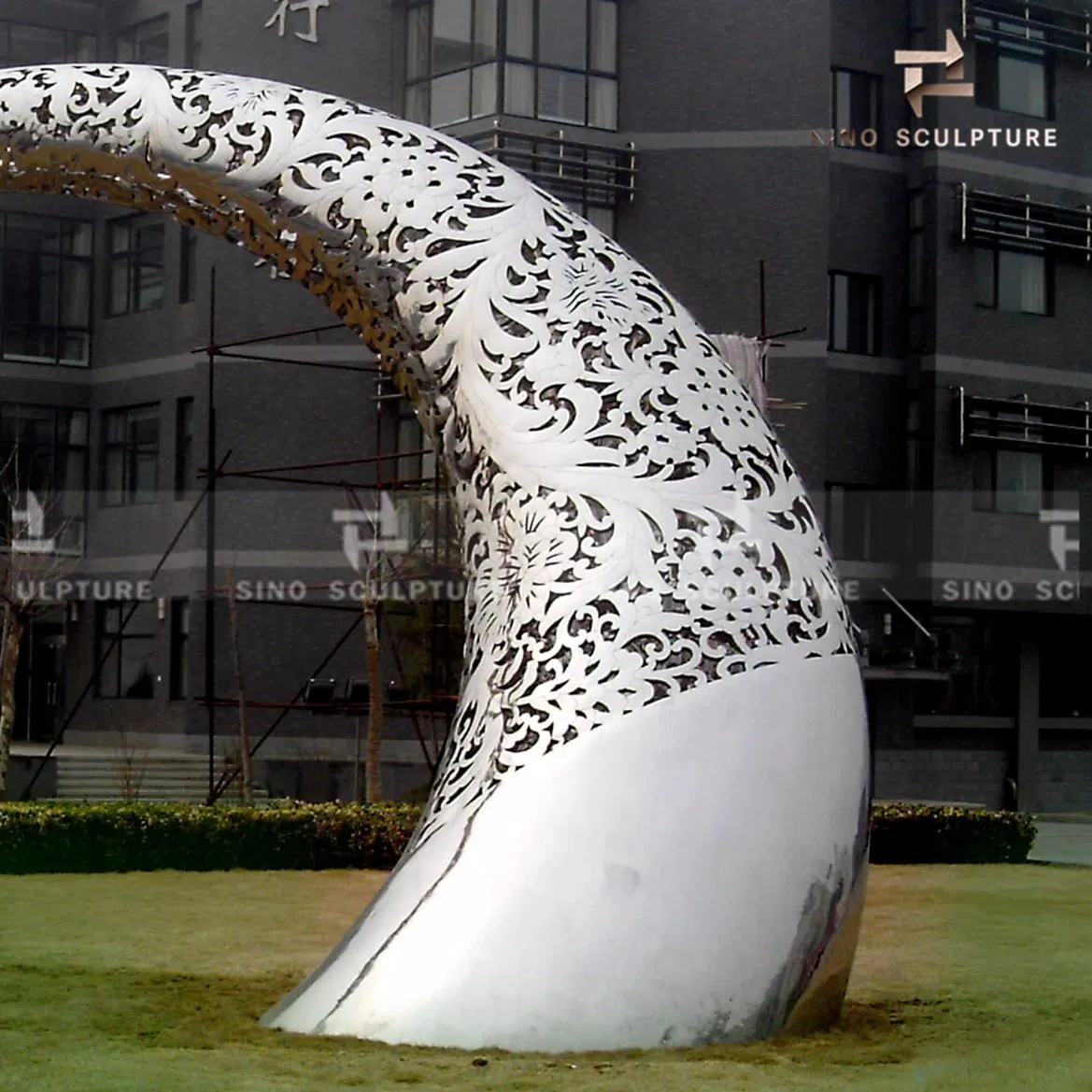 Curved Carved Mirror Polished Stainless Steel SculptureThe curved semi-circular hollow polishing sculpture is located in Beijing University of Commerce and Industry. The surface of the sculpture is carved and curved. It is fully integrated with the University environment.SCULPTURE FEATUREMaterial S......